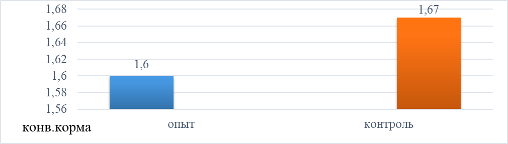 Рисунок 2 — показатели конверсии корма в опытной группе и контрольной