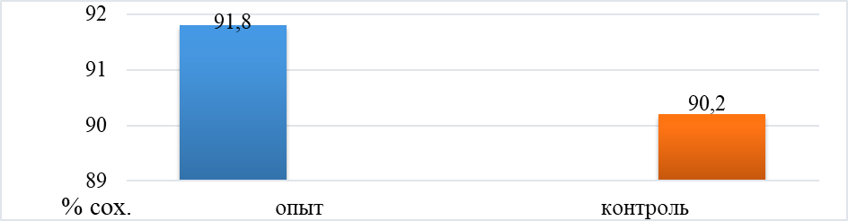 Рисунок 1 — показатели сохранности в опытной группе и контрольной