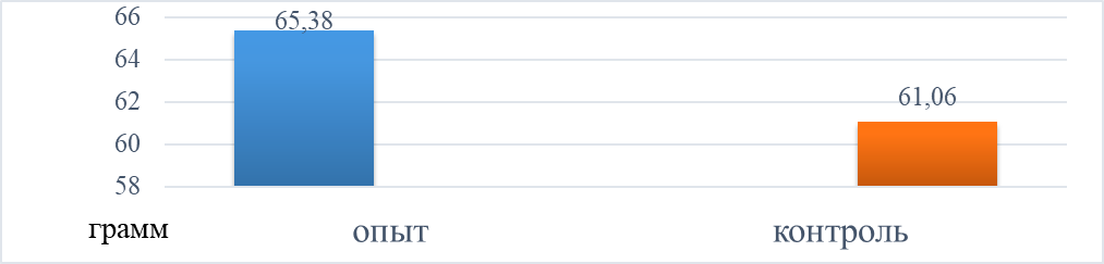 | Опытная группа | 91,8 | 2,603 | 65,38 | 1,60 | 380,99 | 22,40 | 39,2 |